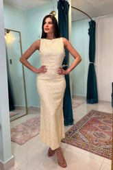 AUREN BUTTER PENCIL SEQUIN DRESS
